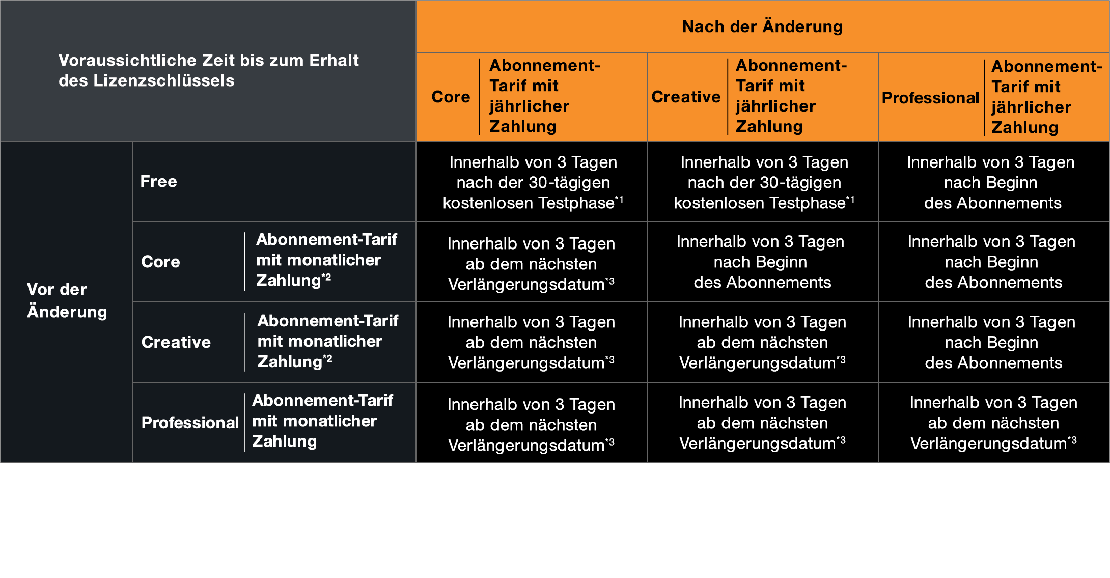 Wenn Sie Ihr Abonnement geändert haben, kann es zu einer Verzögerung bei der Zusendung Ihrer Lizenz kommen. Einzelheiten dazu finden Sie hier unten.