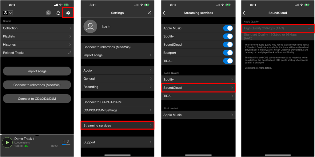 SoundCloud DJ : AAC 160kbps/96kbps, AAC 256kbps