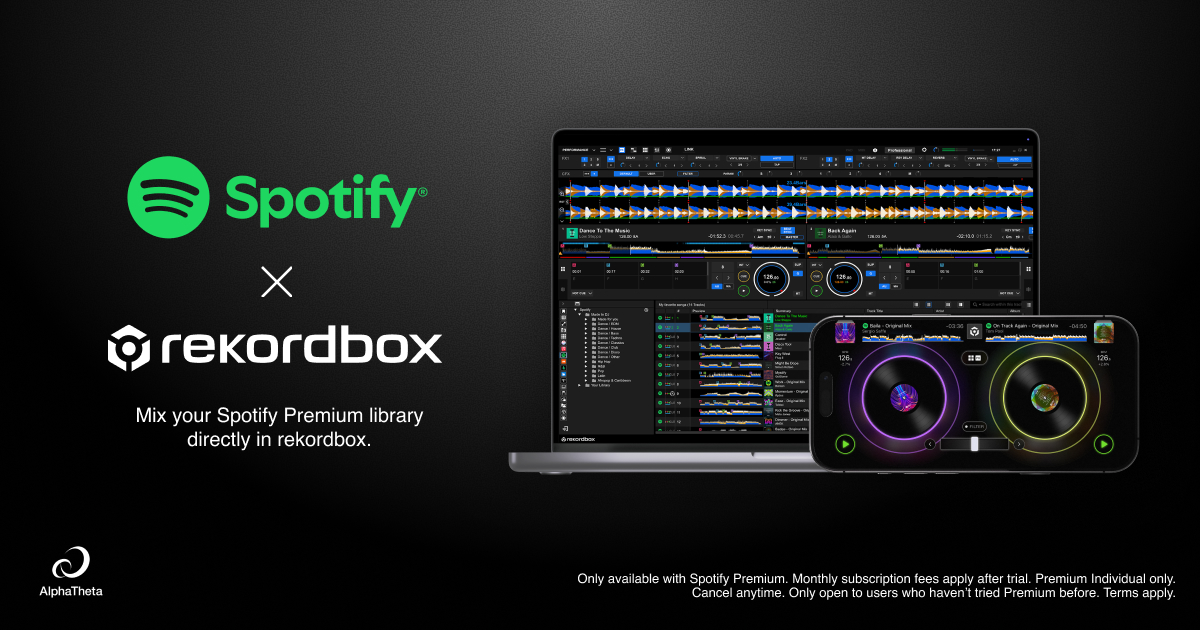AlphaTheta anuncia la compatibilidad de su aplicación de DJ rekordbox for iOS/Android con Spotify. Spotify es el servicio de streaming de música por suscripción más popular del mundo, con más de 100 millones de pistas y miles de millones de listas de reproducción.