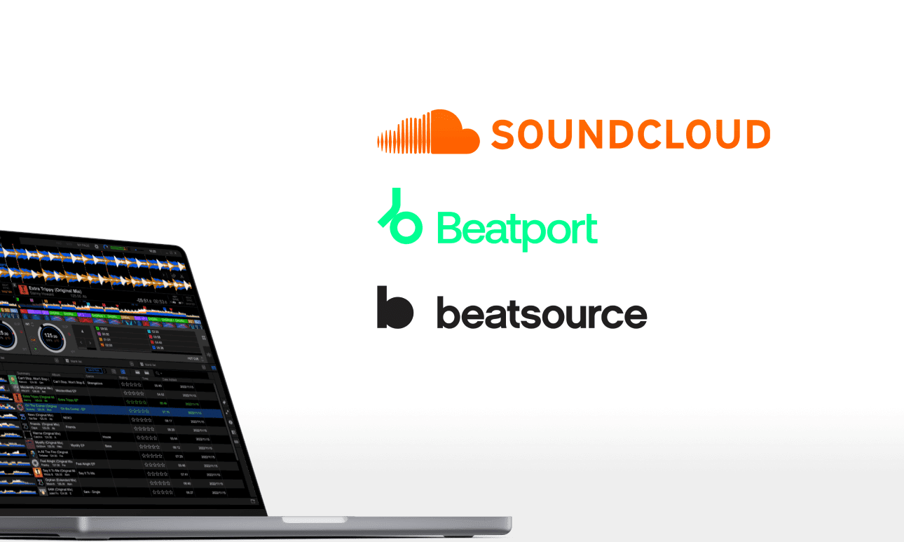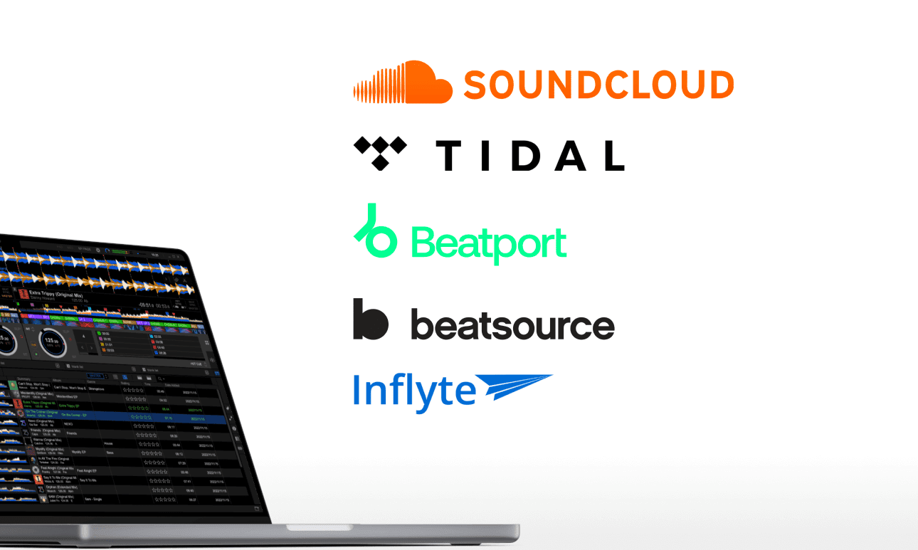 Inicia sesión en los servicios de streaming de música directamente desde la pantalla de exploración para buscar pistas y colocarlas en tus sets.