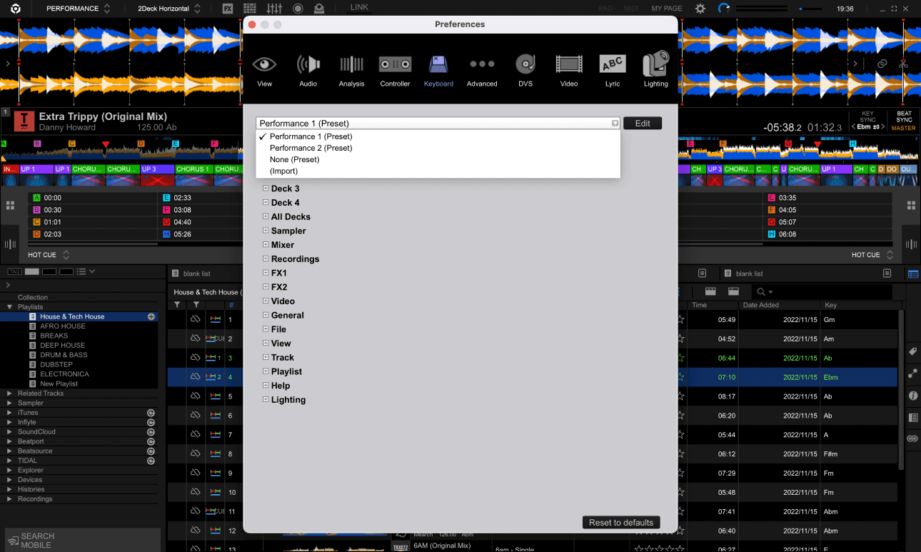 Elige entre 2 o 4 decks y modos de visualización de forma de onda vertical u horizontal