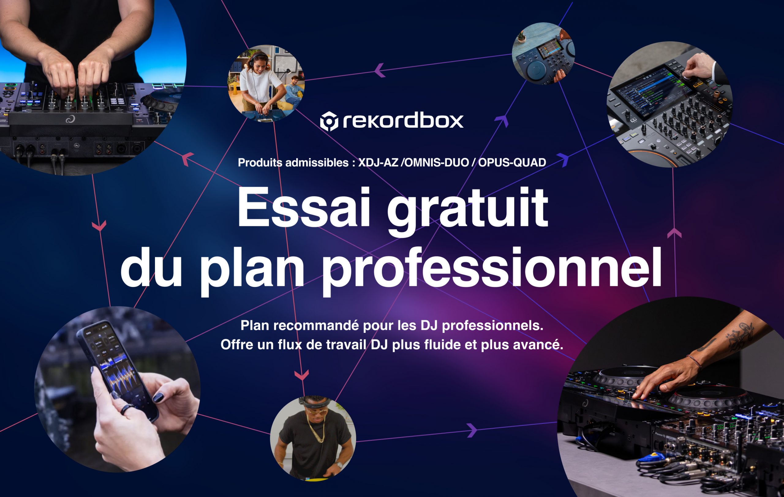 Essai gratuit de trois mois du plan rekordbox professionnel pour les acheteurs d’OMNIS-DUO, OPUS-QUAD et XDJ-AZ.