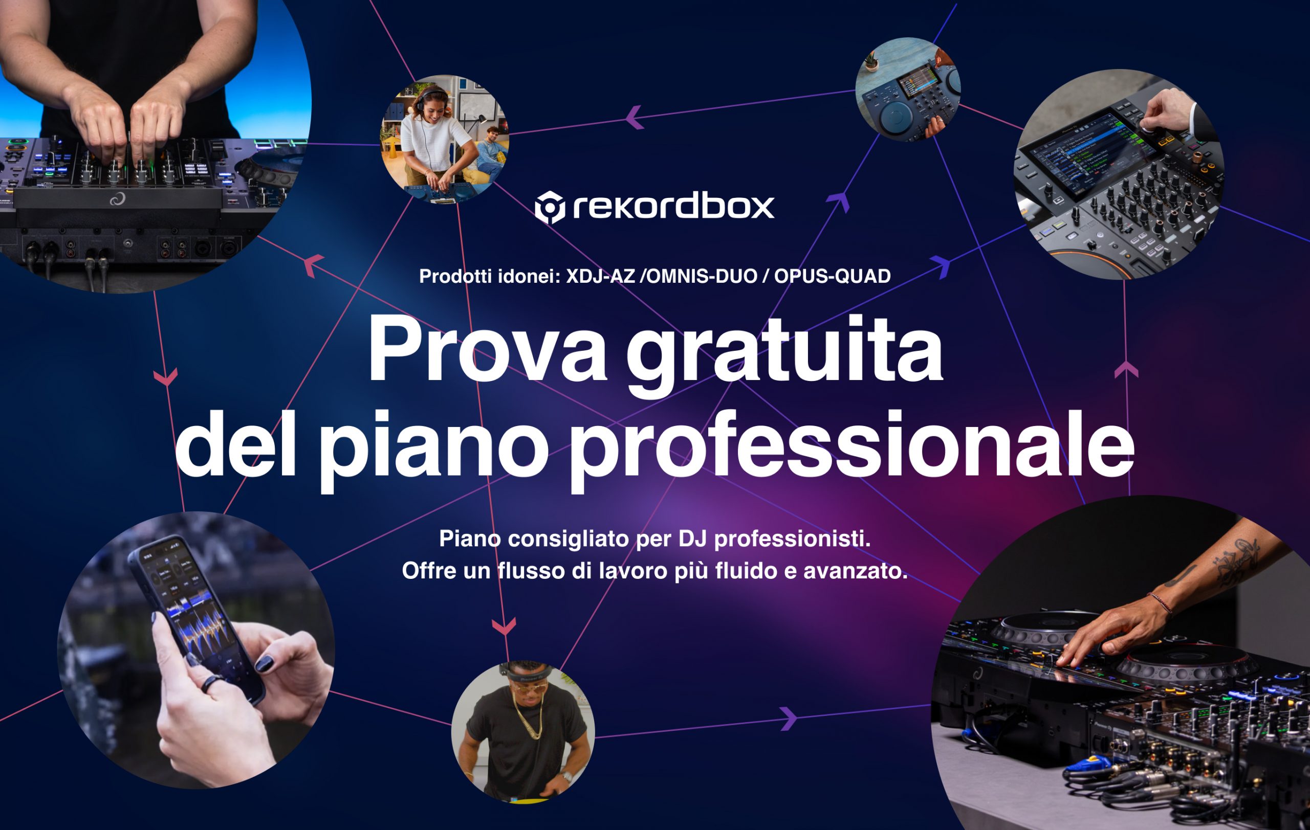 Prova gratuita di 3 mesi del piano rekordbox Professional per gli acquirenti di OMNIS-DUO, OPUS-QUAD e XDJ-AZ