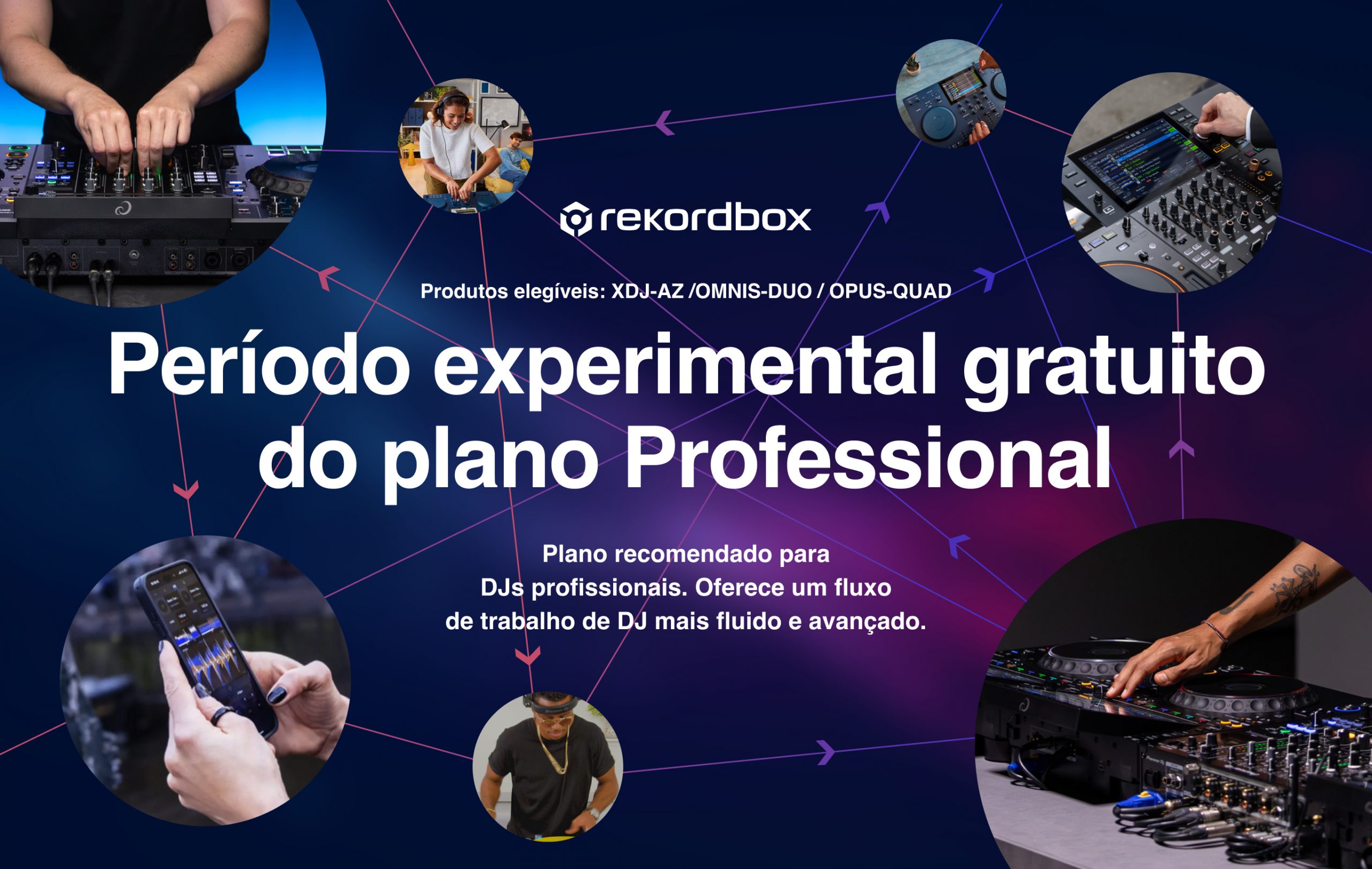 Período experimental gratuito de 3 meses do plano rekordbox Professional para compradores do OMNIS-DUO, OPUS-QUAD e XDJ-AZ.